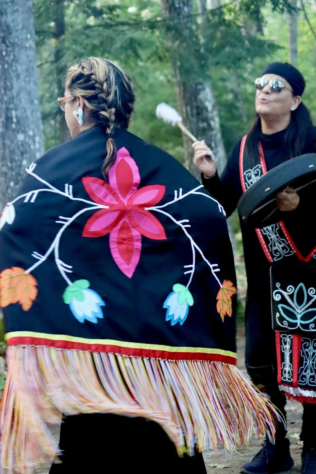 Jason Firefly Brown and Donna Decontie were exceptional in their dancing, singing, drumming and display of bead work in the celebration of ceremony, life and nature. It was a joy to be with such positive, talented and powerful people! Donna crafted all the bead and stitch work. It often symbolizes tribal agreements, kin and values.